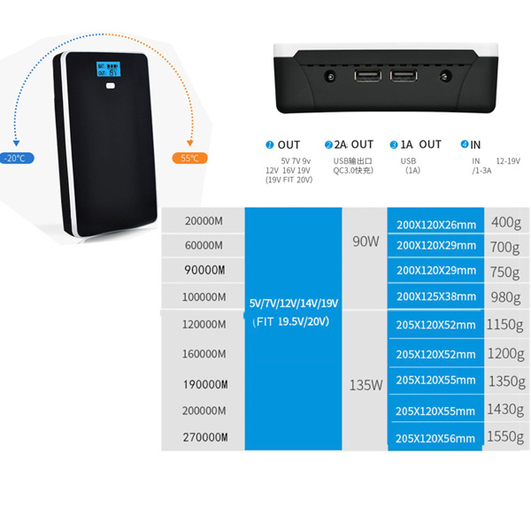 - Capacity: 20000mAh 90Wh